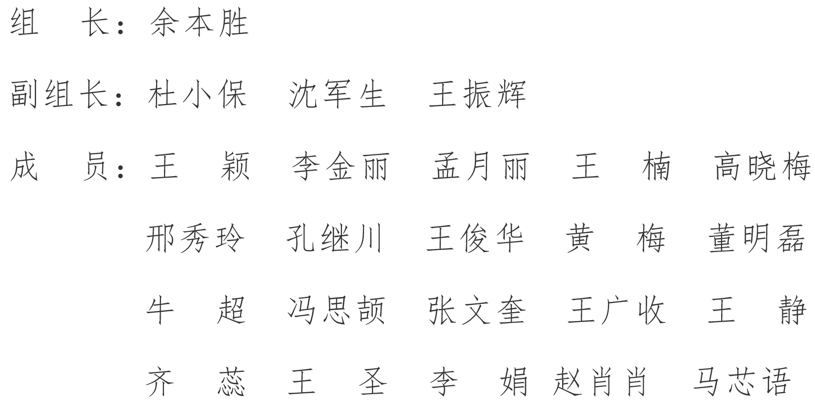学院成立新型冠状病毒感染的肺炎疫情防控工作领导小组,统筹做好此次疫情防控工作,领导小组组成人员包括院领导、各系室主任、党支部书记、辅导员和院团委、学生会主要学生干部,具体人员如下: