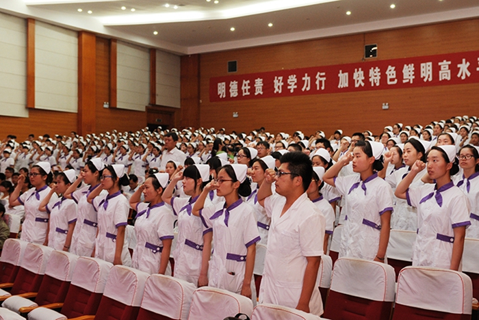 邹校长在讲话中首先代表了校党委、行政向医学院、医学中专部全体师生和附属医院、校医学教育专业发展辛勤工作的广大师生表示慰问。邹校长简要介绍了“5·12”国际护士节的来历和我校举办医学教育的意义。对首届护理本科生三年来的优异表现给予充分肯定。对即将进入临床实习的护理学生提出三点希望:一是要牢记“明德任责”校训,用心服务患者。二是切实践行“自强不息、奋发向上”办学精神,敢于责任担当。三是践行“好学力行”校风,追求卓越人生。他要求同学们在今后的护理事业中肩负起“健康所系,生命所托”的神圣使命,以真心、爱心、责任心对待每一位病人,为学校争光,为学院添彩,为护理事业发展贡献自己的力量。