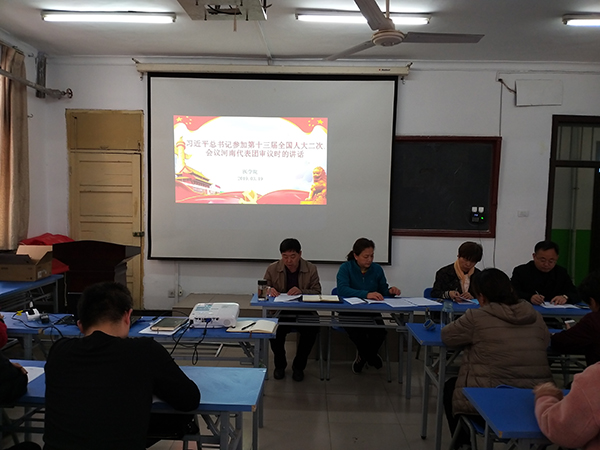 为贯彻《习近平总书记参加第十三届全国人大二次会议河南代表团审议时的讲话》精神,3月19日,医学院组织教职工在学院218会议室进行集中学习。