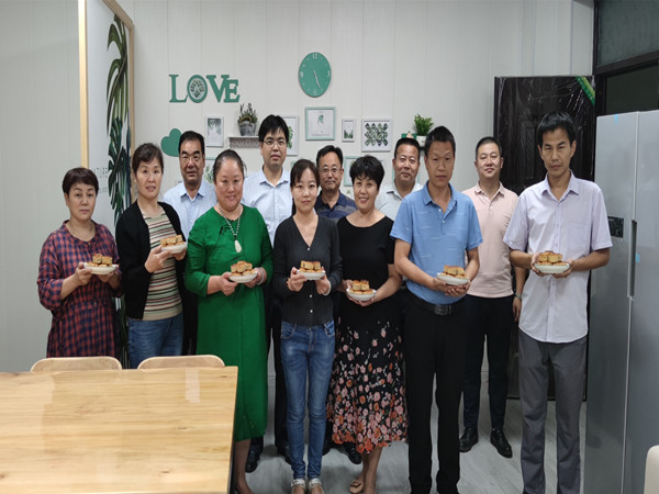 2020年的中秋节和国庆节在同一天到来,在这样一个特殊的日子到来前,医学院组织党员、教职工在装扮一新的教工之家进行制作月饼活动,一起欢度中秋,喜迎国庆。老师们积极参与,有的活馅儿、有的压花、有的操作烤箱。在制作的过程中,老师们热情高涨,一起唱起了《我爱你,中国》《我和我的祖国》等歌曲,发自内心的表达着对祖国的爱和祝福。一块块月饼,蕴含着医学院老师们对家庭美满幸福、祖国欣欣向荣的憧憬。