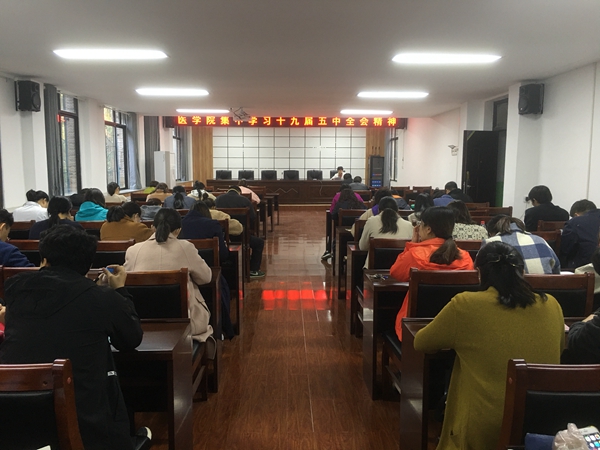 中国共产党第十九届中央委员会第五次全体会议,于2020年10月26日至29日在北京举行,为学习宣传贯彻好党的十九届五中全会精神。11月3日下午,医学院组织全体教职工集体学习《中国共产党第十九届中央委员会第五次全体会议公报》,学习会由学院党委委员高晓梅主持。