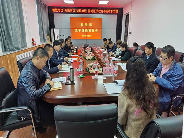 10月26日下午,医学院在223会议室召开改革发展研讨会,会议由院党委书记余本胜主持,院领导班子成员、学科带头人、系(部、中心)负责人、科室负责人、教授代表等参加会议,副校长朱建光、校长办公室副主任范永明应邀出席会议。