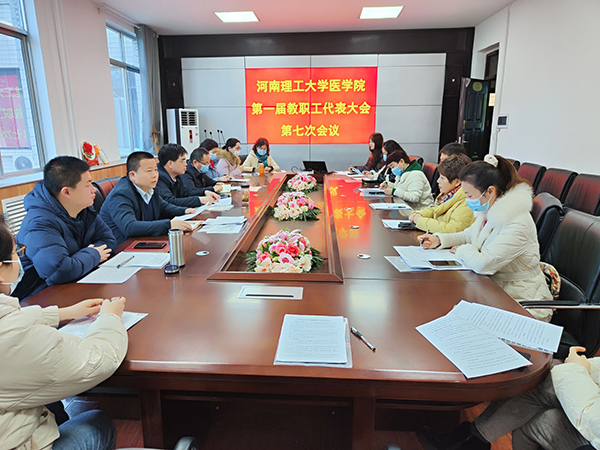 1月15日上午8:30,医学院第一届教职工代表大会第七次会议在223会议室召开,审议《医学院2021年度薪酬分配决算方案》,共商学院发展大计,23名教职工代表中16名代表出席。开幕式由学院党委副书记杜小保同志主持。