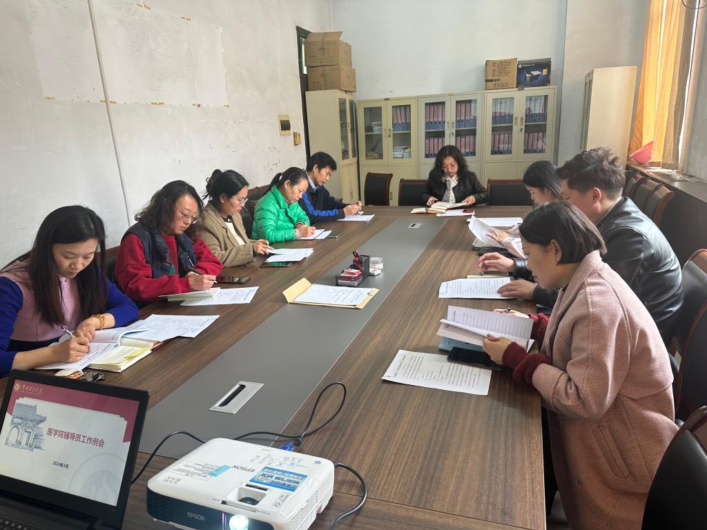 为进一步加强对学生工作的组织和领导,传达上级和学校有关学生工作的文件精神,及时研究和解决学生工作中出现的问题,提高学生教育和管理的针对性和实效性,推进学风建设,维护校园的安全稳定和我院各项学生工作的顺利开展,医学院实行《河南太阳成集团tyc122cc入口辅导员工作例会制度》,并于2024年3月召开全体专兼职辅导员工作例会。