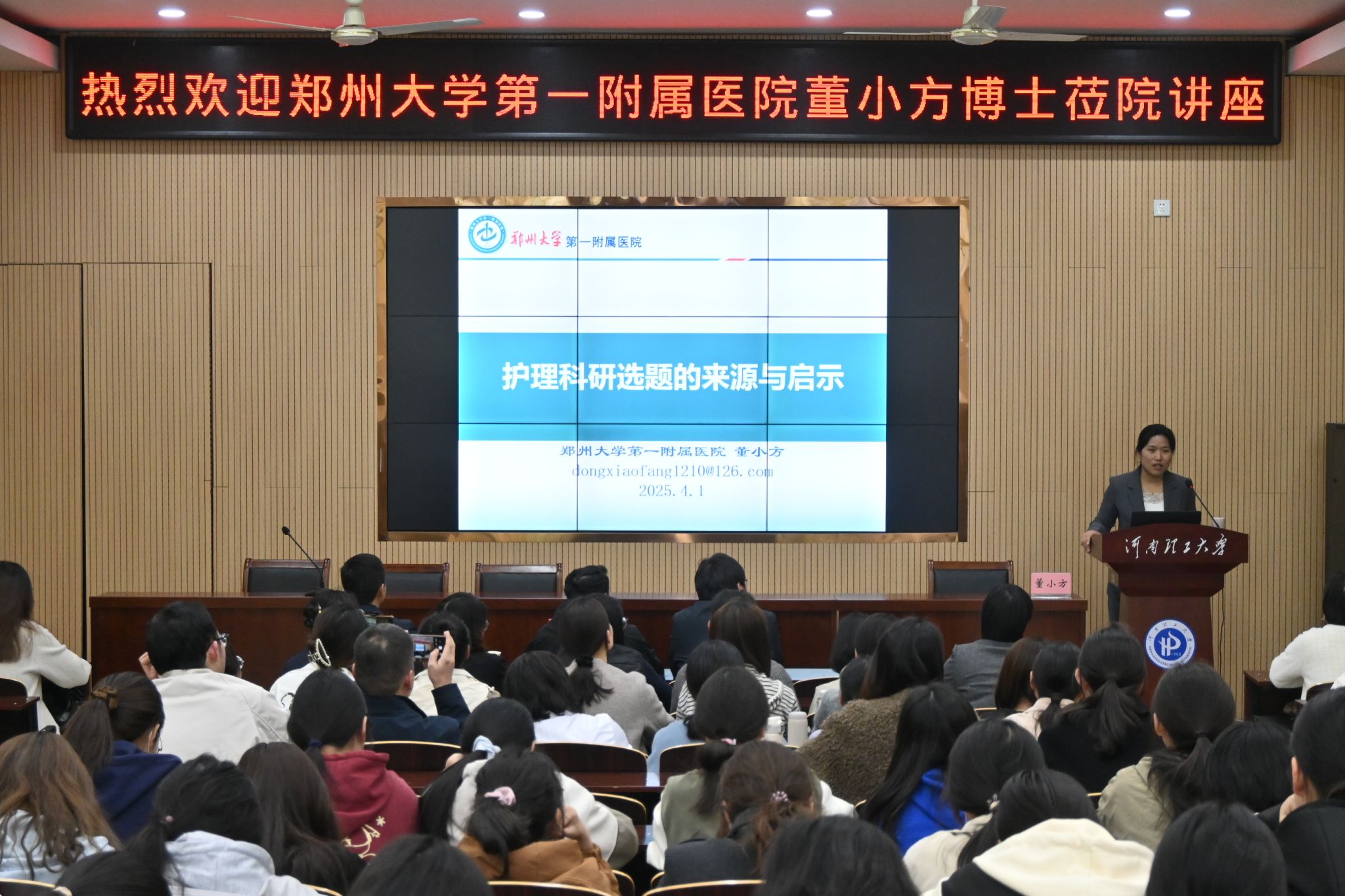 为提升护理科研创新能力,拓宽师生学术视野,4月1日下午,医学院护理系特邀郑州大学第一附属医院董小方博士进行专题讲座。医学院张向锋书记出席会议并致辞,护理学系王蕾主任主持会议,护理系全体教师、附属医院临床带教以及护理学专业学生等近200余名师生到场聆听。