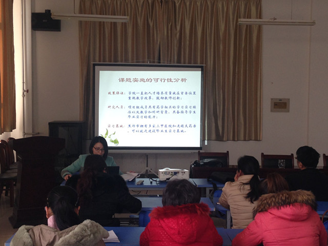 陈兴颖博士结合现阶段药学学生的学习情况以及当前药学专业的就业情况,为各位教师讲解了本次立项课题内容——《药学专业本科毕业生的毕业实习改革和创新》。她深入浅出,先由当今药学本科学生实习困难为引,讲解了传统毕业实习的弊端,进一步突出毕业实习改革和创新的重要性。陈兴颖博士强调加强学生实习培养的重要性,并建立多元化实习评价体系,加快构建本科生导师制度,完善实习基地建设,以完成医学院药学专业实习就业平台的搭建。本次学术交流活动,为即将进入实习的13级药学专业学生做好了实习前期的部分工作,并打下了实习改革的理论基础。
