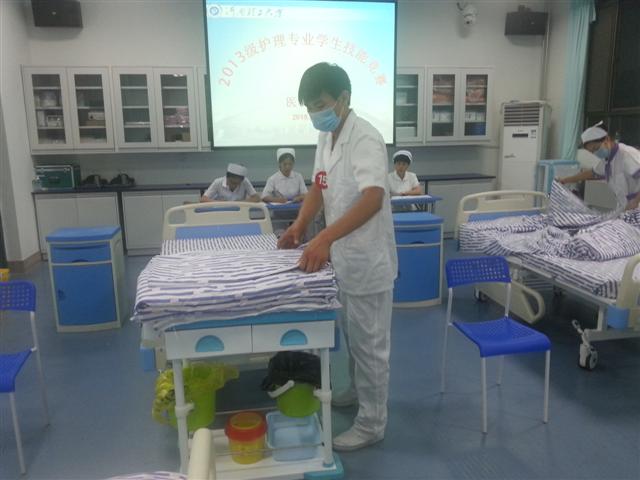本次技能竞赛设铺备用床法、无菌技术基本操作两个比赛项目,由护理教研室的老师担当本次竞赛的评委,来自13级护理专业的15名学生参加了本次竞赛,首次参加竞赛的同学们兴奋而又紧张,但也充分展示了我校本科护生扎实的基本功和良好的精神面貌。赛场上同学们严谨认真、老师们公正严格,赛出了风格,赛出了水平,更赛出了友谊,经过4个小时的激烈角逐,综合两项操作的总分,最终评出了一等奖2名,二等奖5名,三等奖8名。