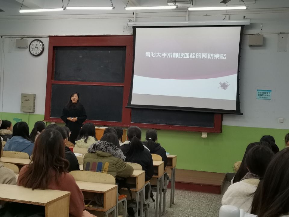 接下来,为护理师生展示了“骨科大手术静脉血栓的预防策略”护理教学竞赛,包括教学目标的设计;与学生互动,分A、B两组讨论临床病例;总结两个病例的相同和不同之处,静脉血栓的预防措施;模拟预防静脉血栓的健康教育;课堂总结等环节。以扎实的专业知识、多元化的教学内容、丰富的文献赢得了师生的好评。