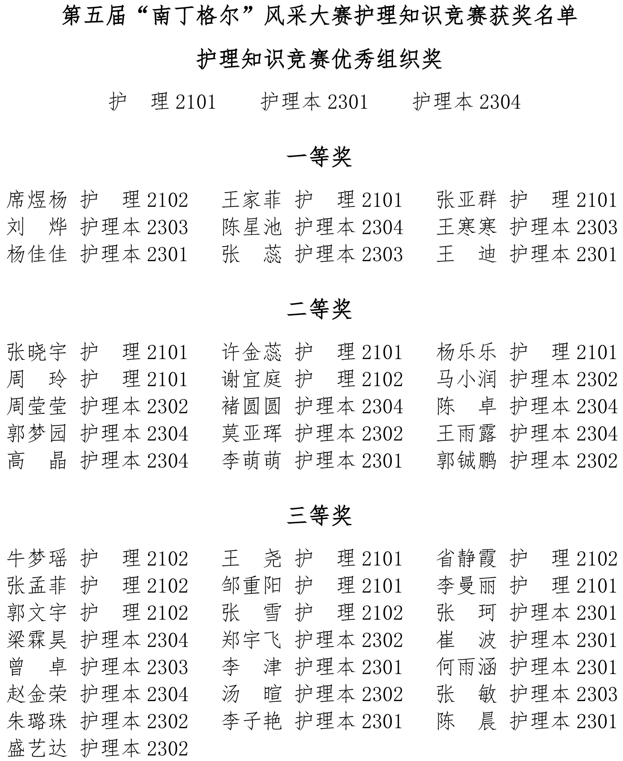 本次竞赛围绕护理学基础、内科护理学、外科护理学、妇产科护理学、儿科护理学等内容进行考核。根据参赛情况,最终评选出优秀组织奖3个,个人一等奖9名、二等奖15名、三等奖22名。