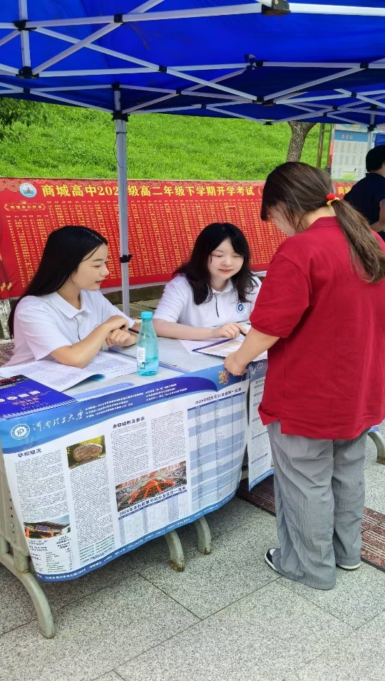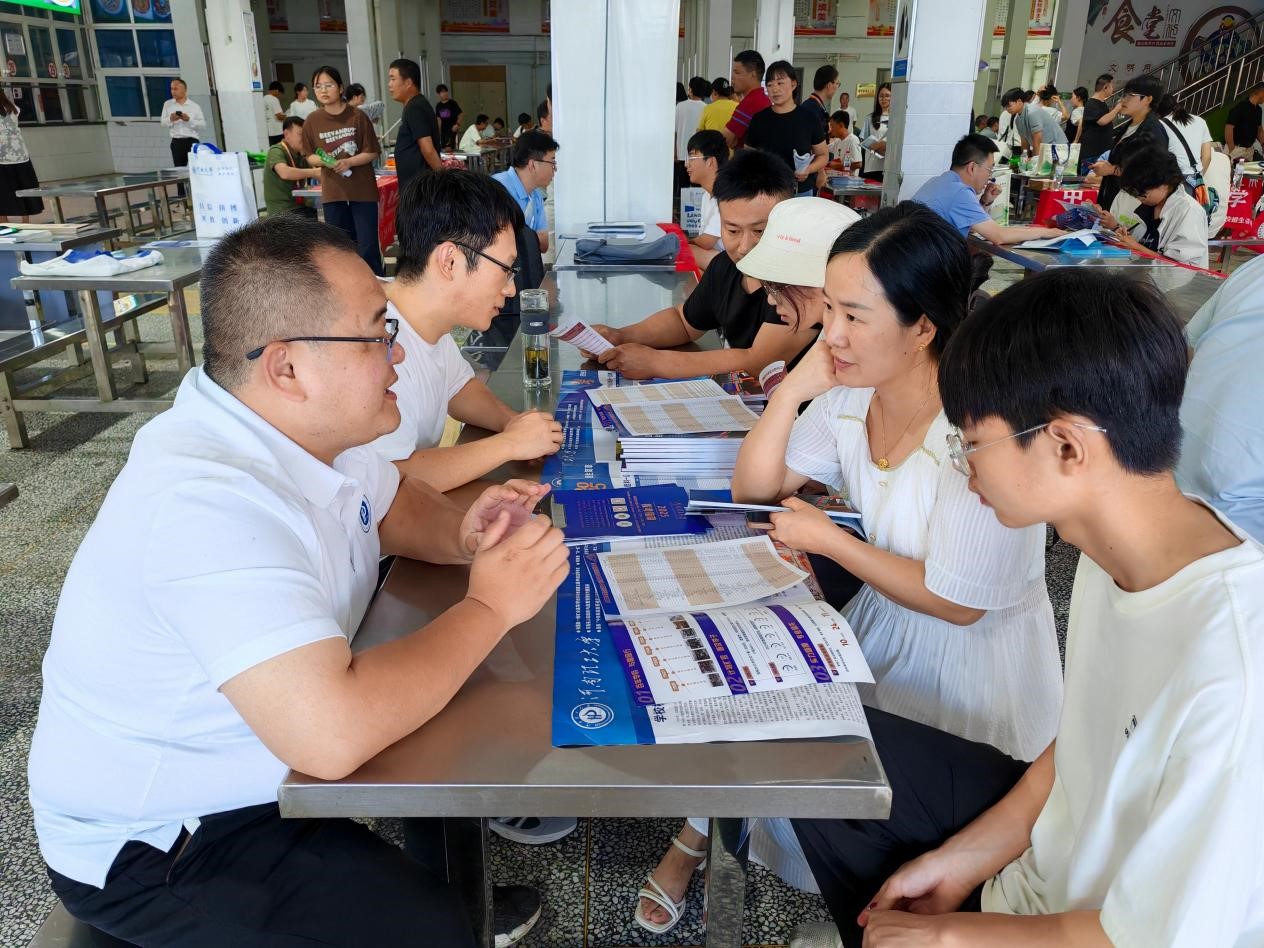 为深化高校与中学的人才培养衔接,吸引更多优秀学子报考,河南太阳成集团tyc122cc入口于6月25日至27日组建招生宣传工作组,先后赴郸城一高、虞城高中、商城高中及漯河高中开展系列招生宣讲活动。通过专题宣讲、面对面咨询、资料发放等多元形式,工作组全面展示了学校的办学特色与育人优势,获得师生及家长的高度认可。
