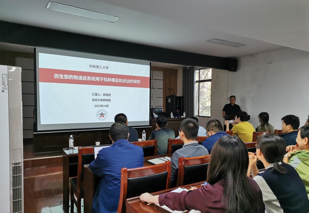 2023年10月31日下午,国家自然科学基金优秀青年科学基金项目获得者,郑州大学药学院教授,博士生导师史进进应邀在北校区医学院317会议室做了题为《仿生型药物递送系统用于抗肿瘤及抗炎治疗研究》的学术讲座。报告会由王振辉副院长主持,书记张向峰和副院长陈文波,药学本科生、研究生和科研老师也参加了会议。