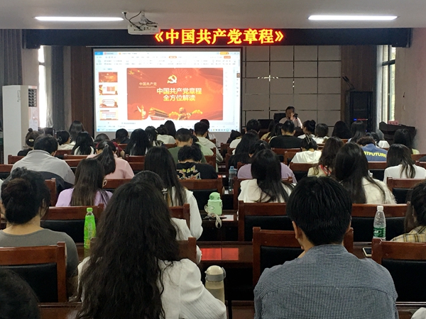 开班仪式后,张向锋以《学好“四史” 筑牢初心》为题从党史是中国共产党的领导不断走向成熟的实践史、新中国史是中国共产党推进建设新中国的实践史、改革开放史是中国共产党推进社会主义制度自我完善和发展的实践史、中国共产党是引领世界社会主义发展的重要政治力量、学好“四史”,牢记初心使命等五个方面为入党积极分子讲授第一节培训课程。第二节课程由护理系学生党支部书记齐蕊为学生讲授《中国共产党章程》,从党的性质和根本宗旨、党员的权利和义务、如何行动去争取早日入党等方面进行了详细讲解。第三、四节课程由专职组织员董明磊为学生讲授《坚定不移做好新时代意识形态工作》《党员发展流程和党员的教育管理》集中授课结束以后,还将进行分组讨论、观看视频、撰写心得体会和结业考试等环节。