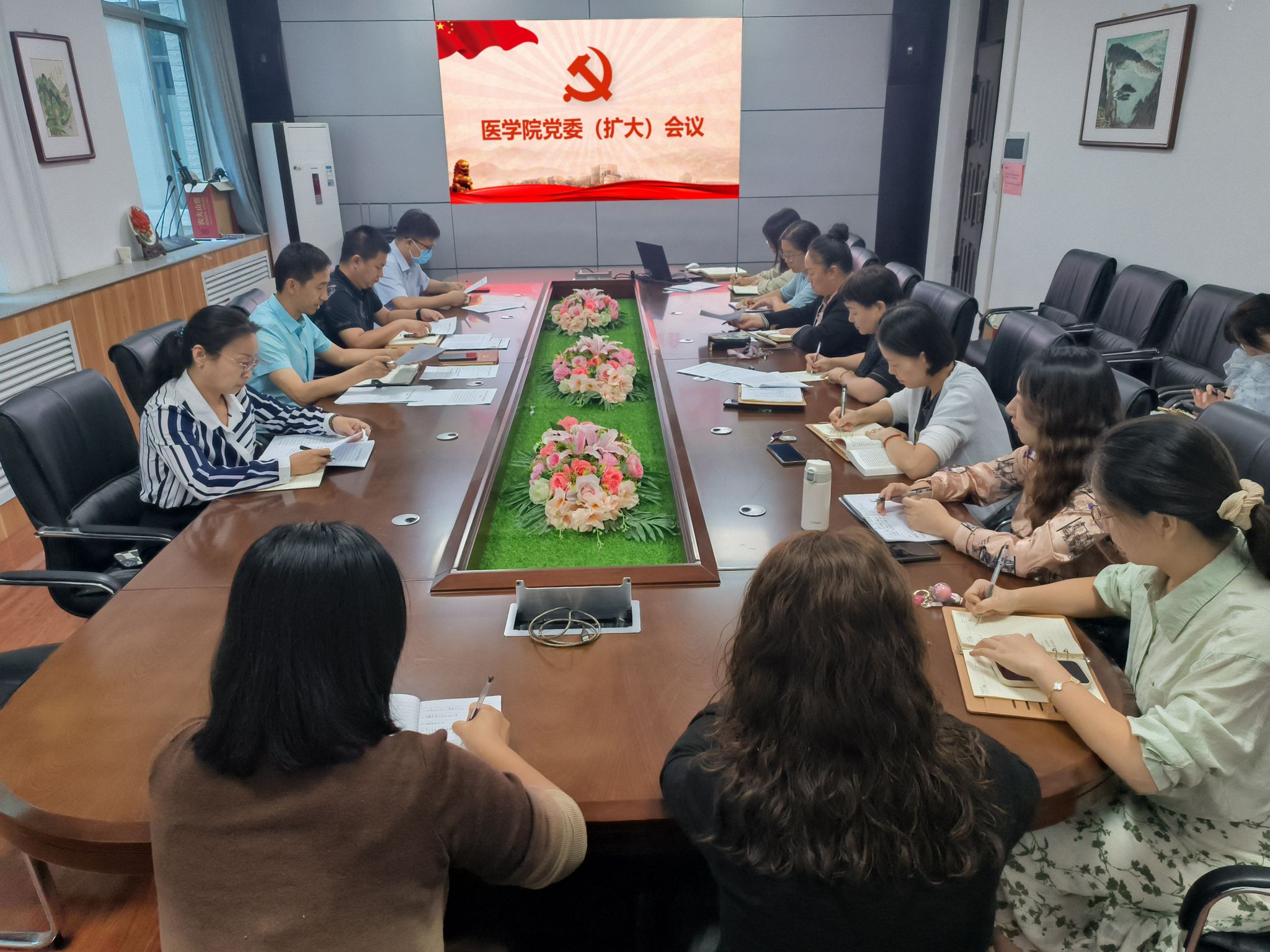 2024年9月26日,医学院党委在223会议室召开党委(扩大)会议,深入学习贯彻习近平总书记关于党纪学习教育的重要指示精神,回顾学院党纪学习教育工作,并对下一步工作作出安排部署。会议由医学院党委书记张向锋主持,各党委委员出席会议,各科室、系部、中心主任及各支部书记、支委、党外人士列席。