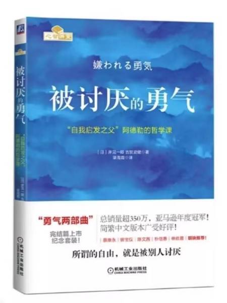 同时它还是一味治愈心灵的良药。如果你正处于人生的低谷,被自卑、焦虑、迷茫等情绪所困扰,那么《被讨厌的勇气》就是你的良药。它以温暖而坚定的力量,告诉你不必活在别人的眼光里,不必为了迎合他人而失去自己。它让你重新审视自己的价值,接纳自己的不完美,勇敢地追求自己想要的生活。读完这本书,你会感觉内心的负担被卸下,取而代之的是一种轻松、自由的感觉,仿佛获得了新生。