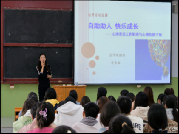 4月16日下午,医学院心理委员和宿舍信息员培训在第二教学楼2102顺利举行。院团委书记李金丽主讲,全体在校生班级心理委员和宿舍信息员190余人到场聆听。