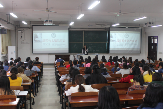 为了提高大学生识别、抵御和防范邪教的能力,培养大学生正确的世界观、人生观,10月21日我院全体14、15级全体学生在三号教学楼3103举行了以“崇尚科学,反对邪教”为主题的教育活动。主题教育会由辅导员孙维佳老师主持召开。