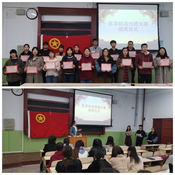 为深入学习贯彻习近平新时代中国特色社会主义思想和党的十九大精神,深入学习习近平总书记关于青年工作的重要思想,贯彻落实团的十八大精神,医学院团委近期开展了“微团课大赛”、“活力团支部”、“魅力团支书”等活动的评比表彰活动。并于11月17日在北校区2101举行了表彰仪式,参加本次仪式的有医学院团委委员以及学院各支部的团支部书记。