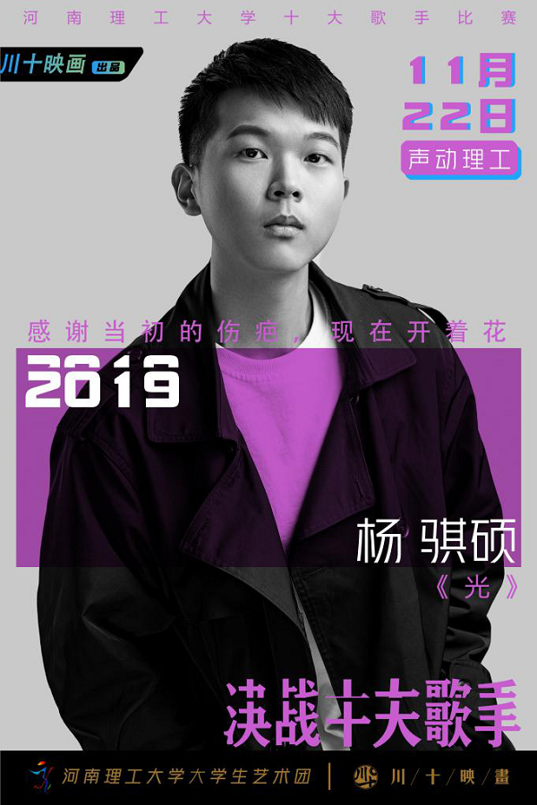 杨骐硕以锐不可当的气势,从医学院初赛,北校区复赛历经一个多月的层层选拔终于站在了学校决赛的舞台。初赛《年轮说》,低沉的嗓音,优美的旋律,一张张时间的画面从我们面前闪过;复赛《有一种悲伤》,曲调时快时慢,杨骐硕凭其扎实的功底,献上了一场不停歇的音乐盛宴,让观众得以大饱耳福,更是以北校区第一名的绝佳成绩进入校决赛。决赛分为对抗赛、复活赛以及排位赛。杨骐硕,以一首《残酷月光》和一首《乌兰巴托的夜》,将满腔的热情融入到了自己的歌声之中,他用自己的青春之声,激起了一波又一波的热潮,最后,比赛在全体人员合唱《我和我的祖国》中落下了帷幕。