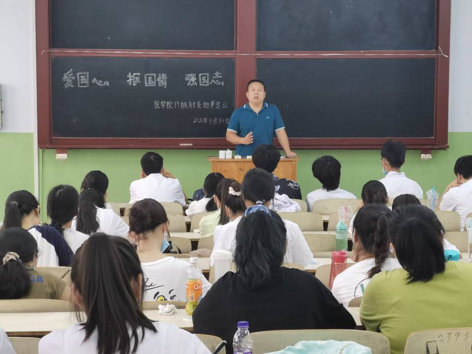 2020年8月30日,医学院辅导员号召在校学生于北校区2教楼召开2020年秋季开学思政第一课“爱国心、报国情、强国志”主题班会。