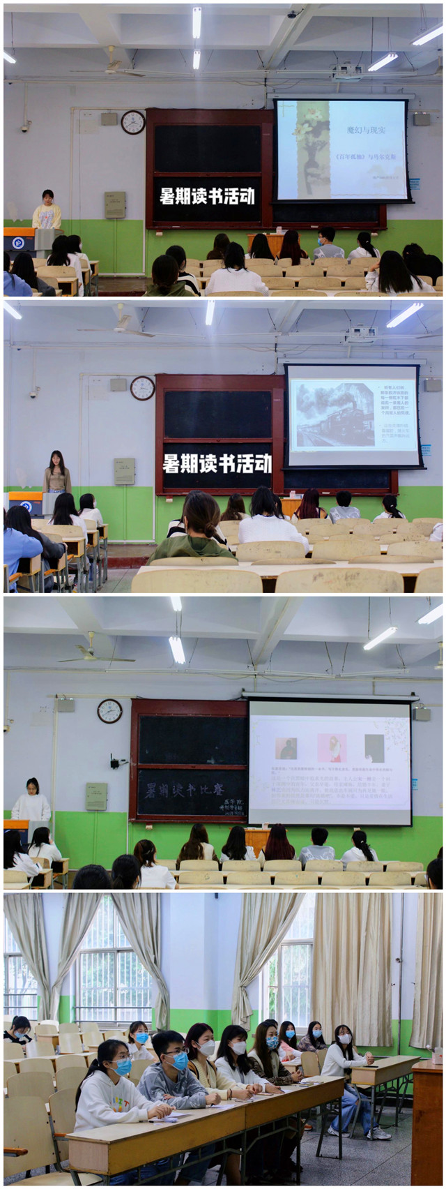 10月8日下午2点30分,我院暑期读书心得大赛在2105教室顺利进行。本次大赛以“博览伴我同行 经典助我成长”为主题,院学工办李金丽老师和院学生会5名学生干部担任评委。