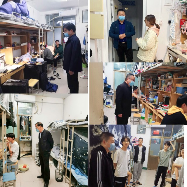 我院学生宿舍分布在北校区的1号、5号、6号、8号公寓,为了全面覆盖学院的宿舍,五位院领导进行了楼号楼层分配,确保走访不漏一个宿舍。走访中,院领导详细了解了疫情防控期间学生的思想状态、学习情况和生活动态。叮嘱同学们当前疫情防控形式依然严峻复杂,不能有丝毫松懈心理,并就学校疫情防控措施进行宣传,要求同学们听从指挥、自觉遵守学校疫情相关规定,保证宿舍卫生,常通风换气,构建文明宿舍环境,不能因为上网课就松懈,要坚持良好的学风,诚信考试。同时给同学们说到,在封闭管理期间若有困难和需求,及时向辅导员老师反映,学院将全力支持和帮助同学们解决困难。同学们纷纷表示对老师们关怀的感谢,并表示会认真做好疫情防控常态下的个人管理,遵守学校有关疫情防控的相关规定,坚定战役必胜的信心,以积极的心态投入到接下来的学习和生活中。