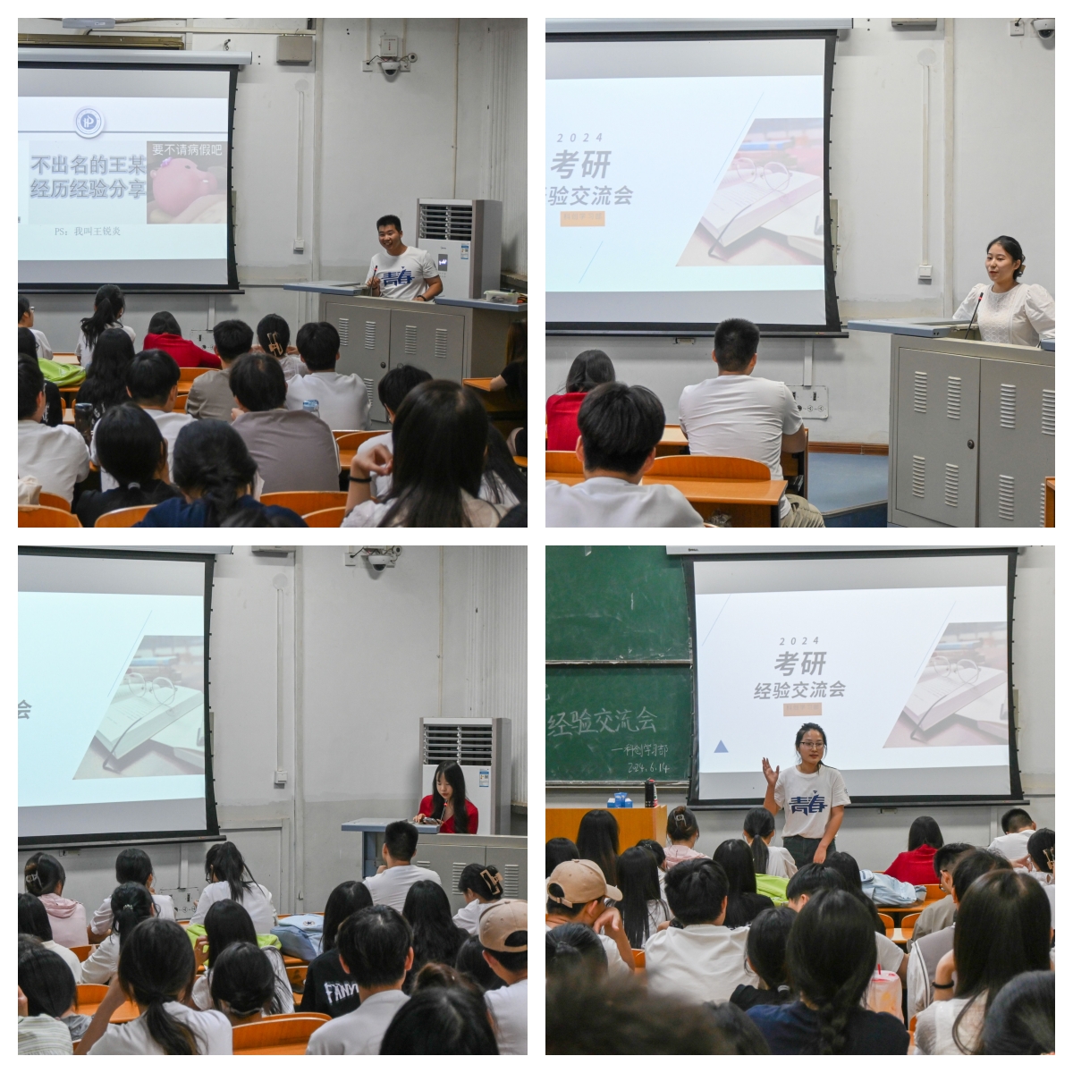 鲲鹏久有凌云志,硕果飘香又一年,为帮助医学院学生明确考研方向,提高备考效率,6月14日,医学院在1101教室召开了2024年考研经验交流会。本次活动邀请了2024届优秀上岸学子李洁、仝祎冉、王锐炎、冯嘉瑜进行分享。