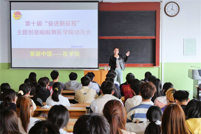 4月9日下午,第十届“奋斗新征程”主题创意啦啦舞比赛动员大会在第二教学楼2401教室召开。院党委副书记朱丹亲临现场进行鼓舞动员,团委书记李金丽主持,全体啦啦舞成员140余人参加。