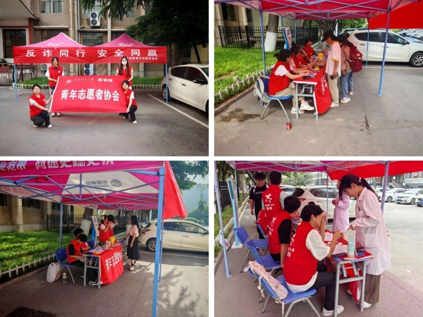 2025年4月26日,医学院青年志愿者协会在北校区学林餐厅前举办“反诈同行,安全同赢”主题宣传活动。活动通过情景模拟、趣味谜题、知识竞答等多元形式,将反诈知识转化为生动实践,吸引数百名师生参与,切实增强校园防诈免疫力。