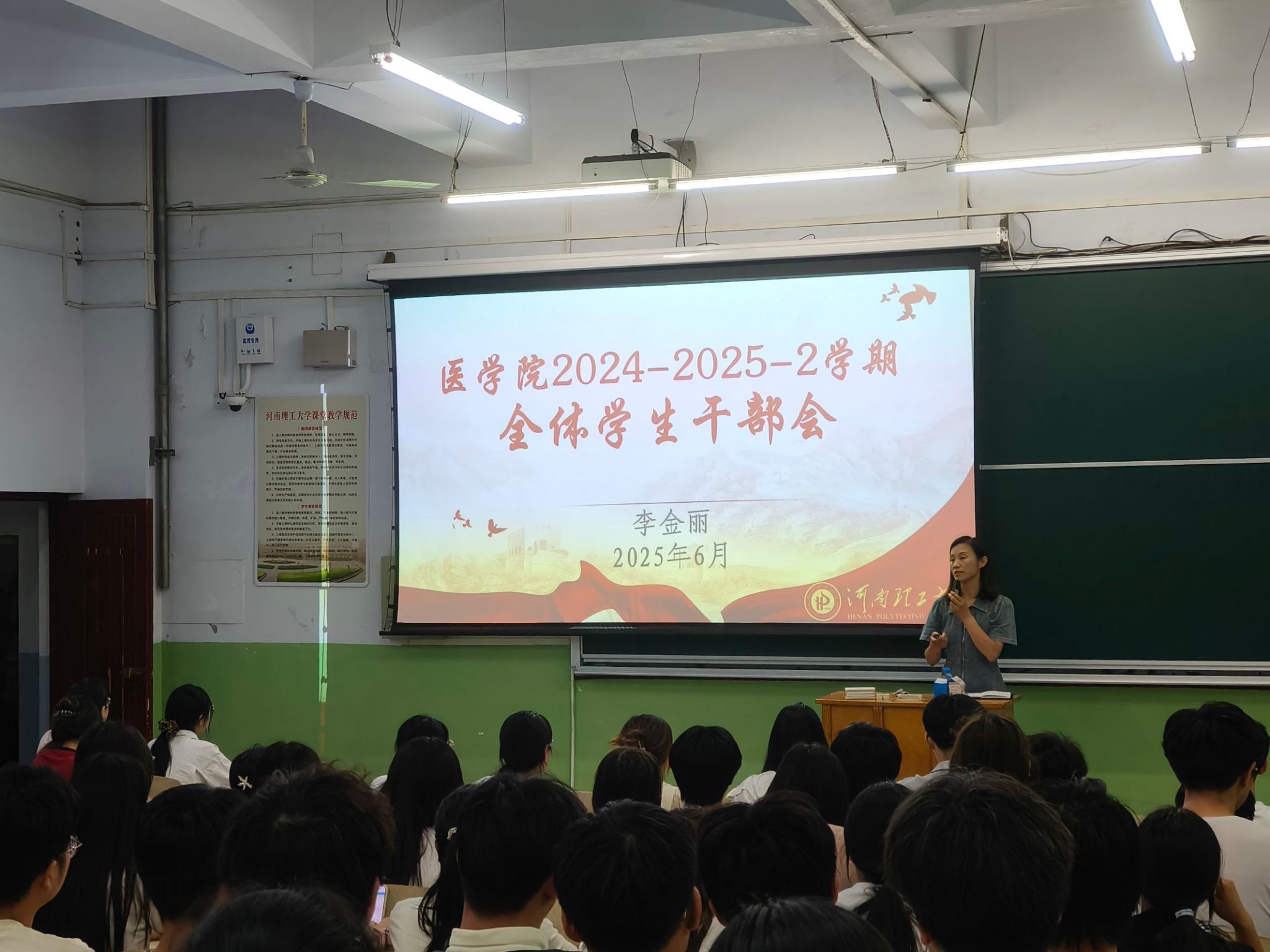 6月11日晚,医学院团委在第二教学楼2101教室召开新一届全体学生干部工作会议。院团委书记李金丽主持,换届后新任全体学生干部参会。会议旨在明晰学生干部职责,严守工作纪律,提升队伍整体素质。