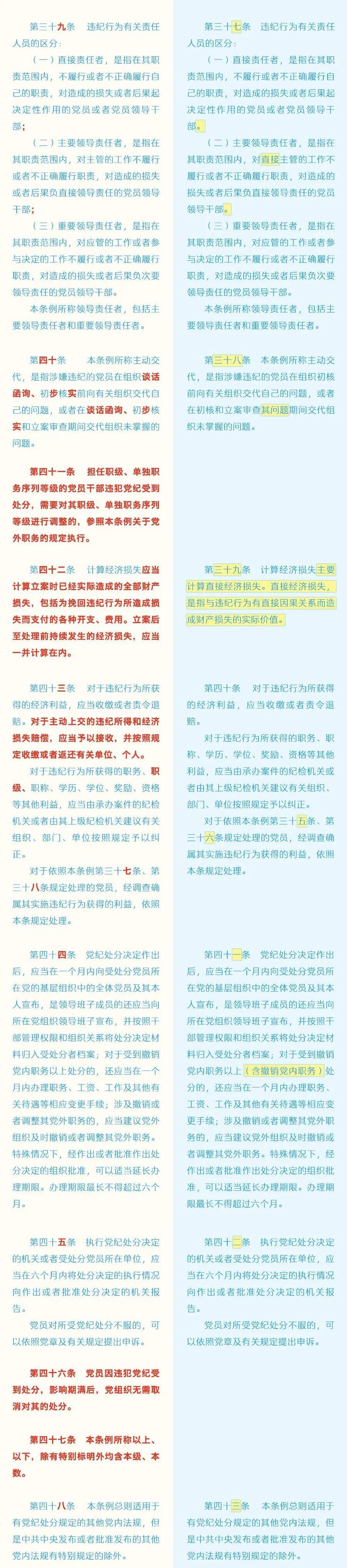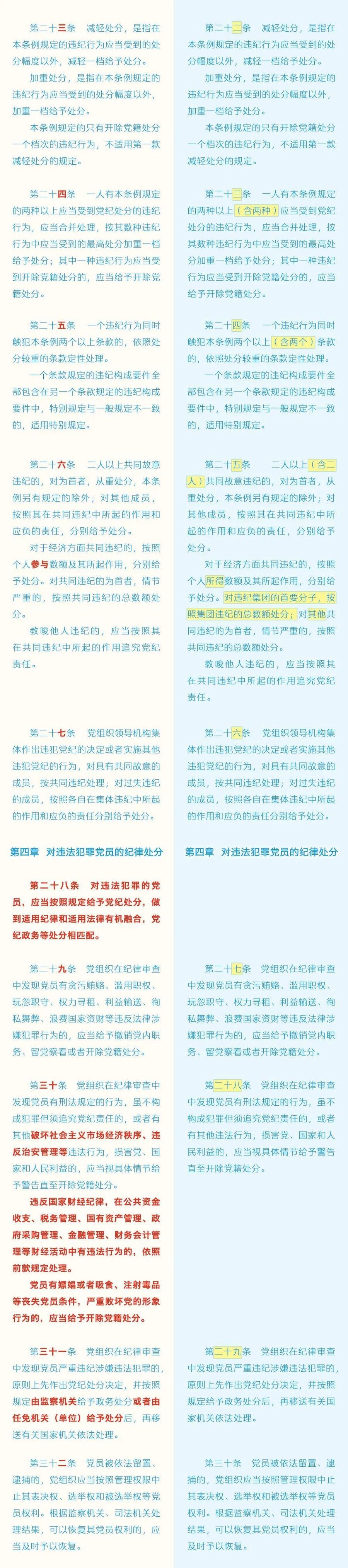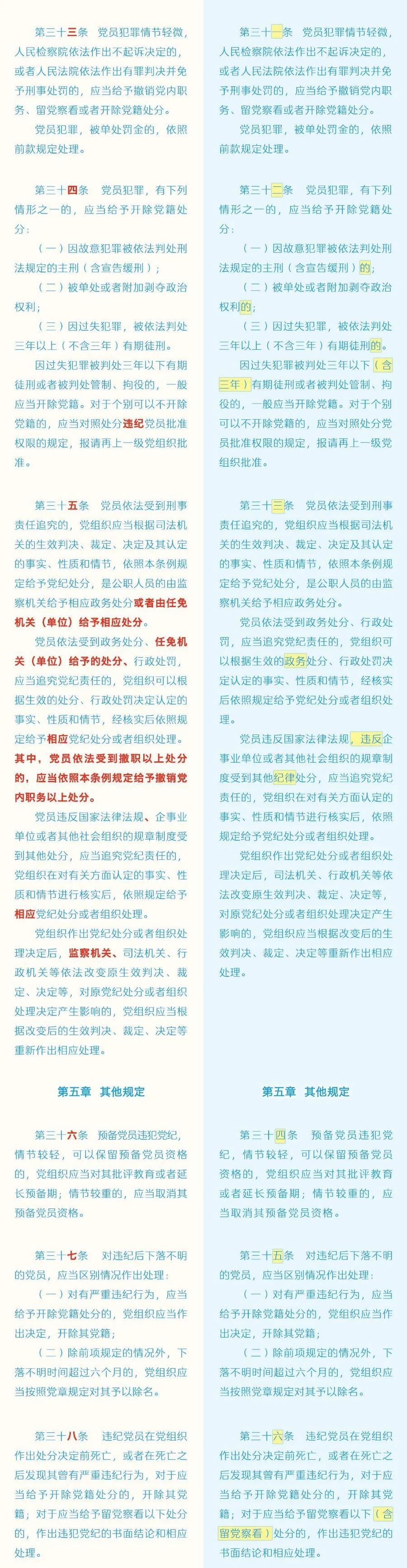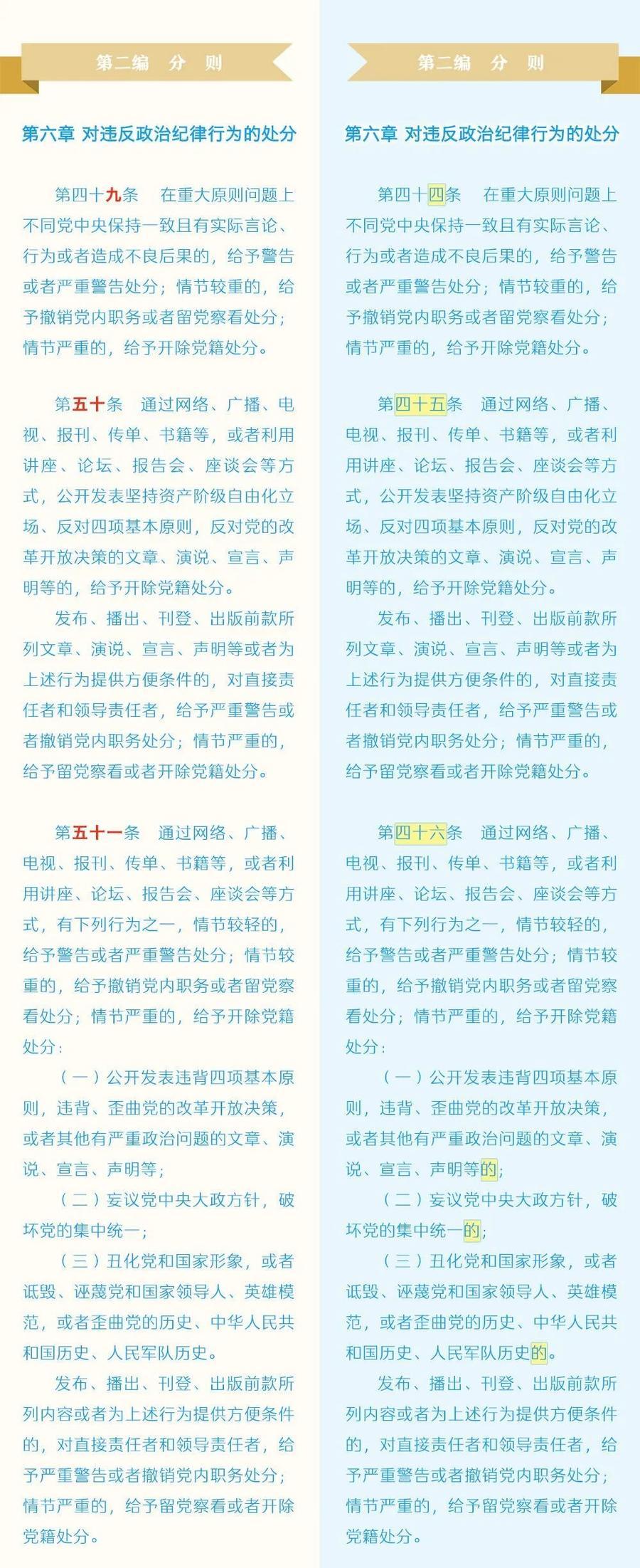党纪学习教育 | 《中国共产党纪律处分条例》修订前后最全对照表