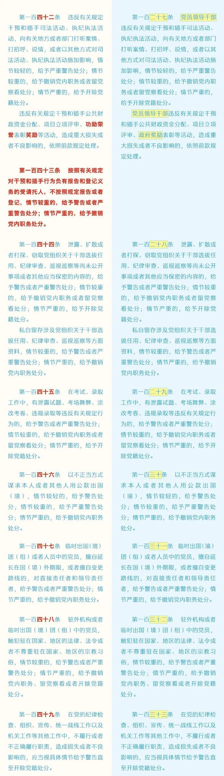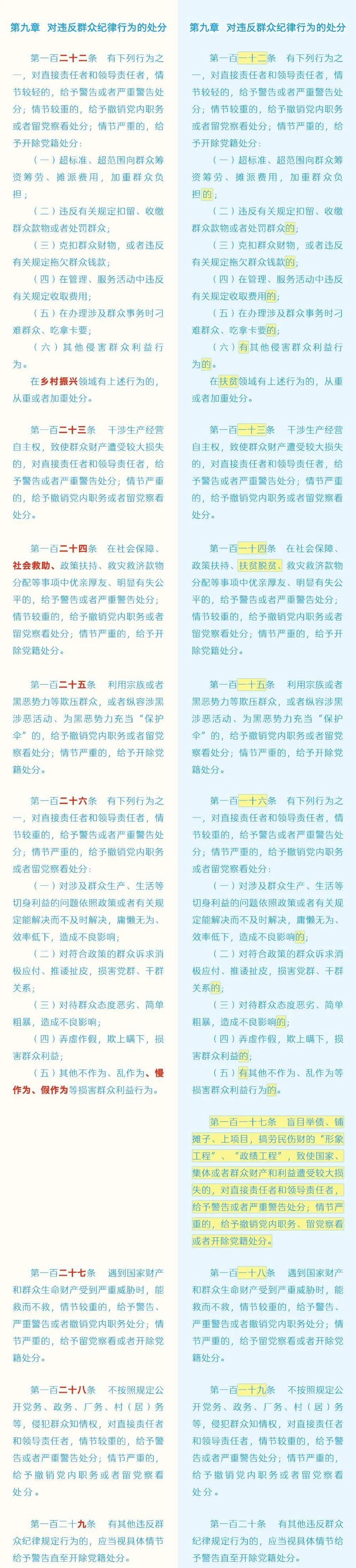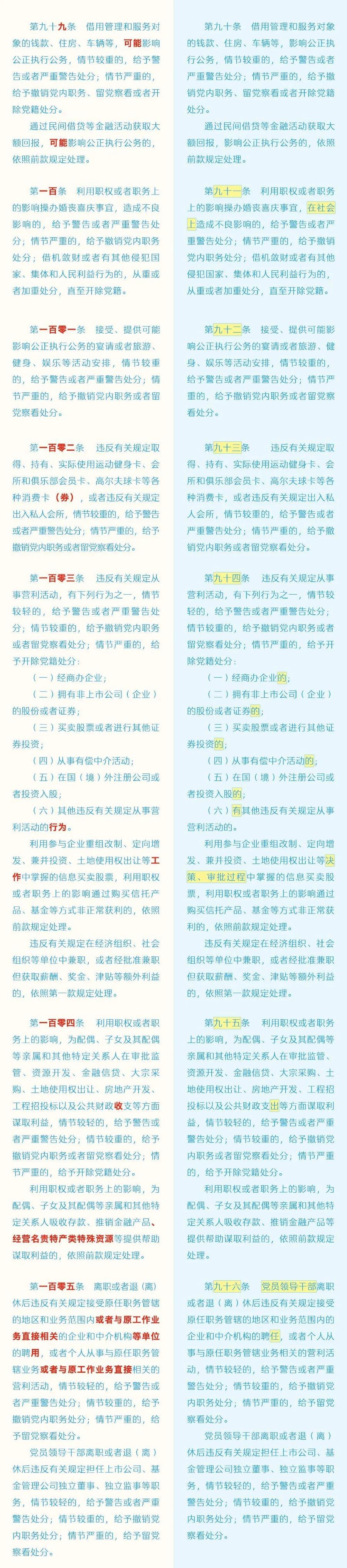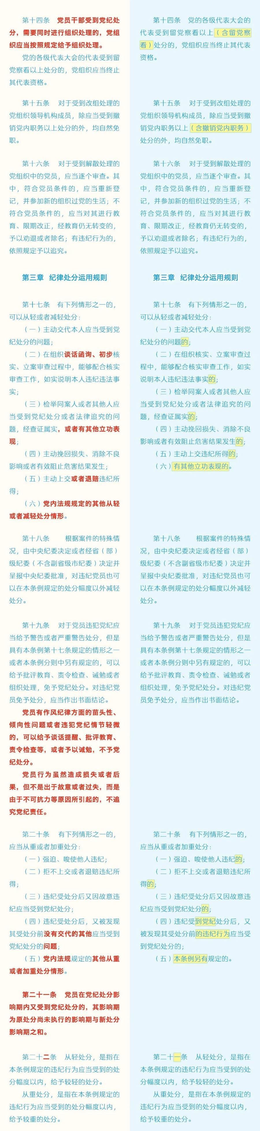 党纪学习教育 | 《中国共产党纪律处分条例》修订前后最全对照表