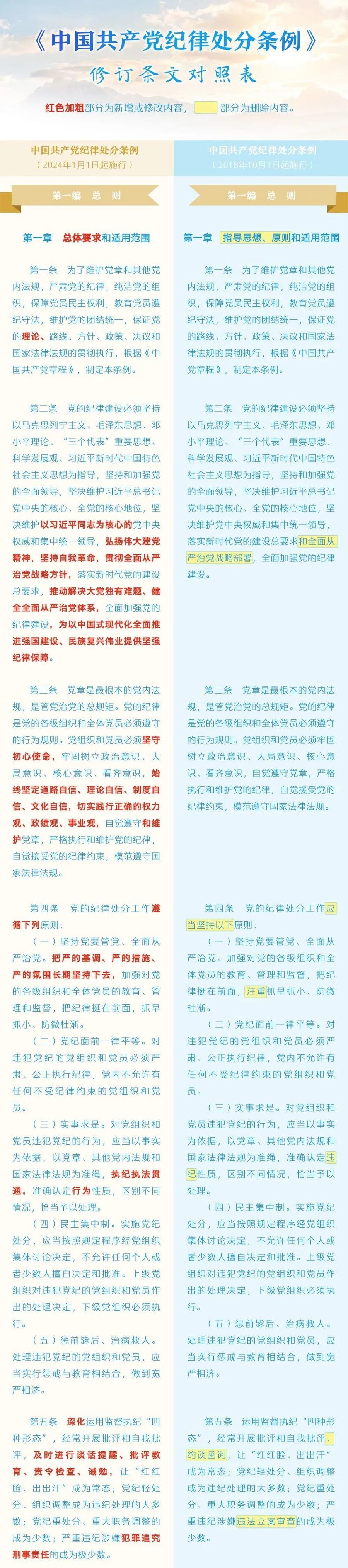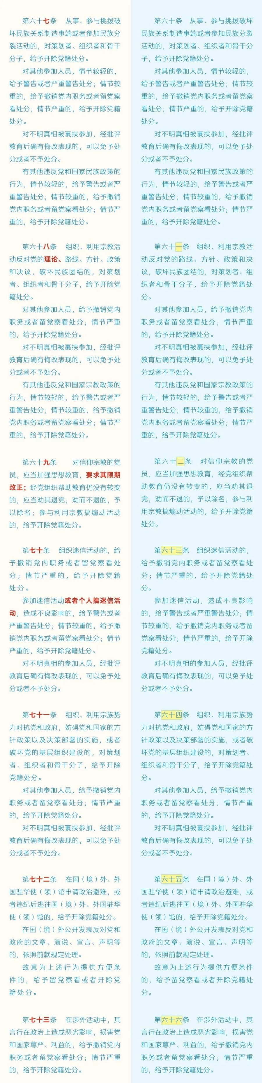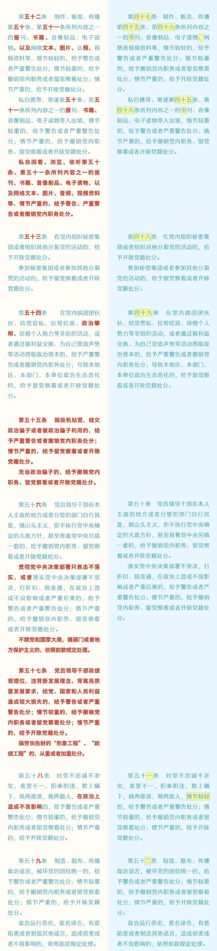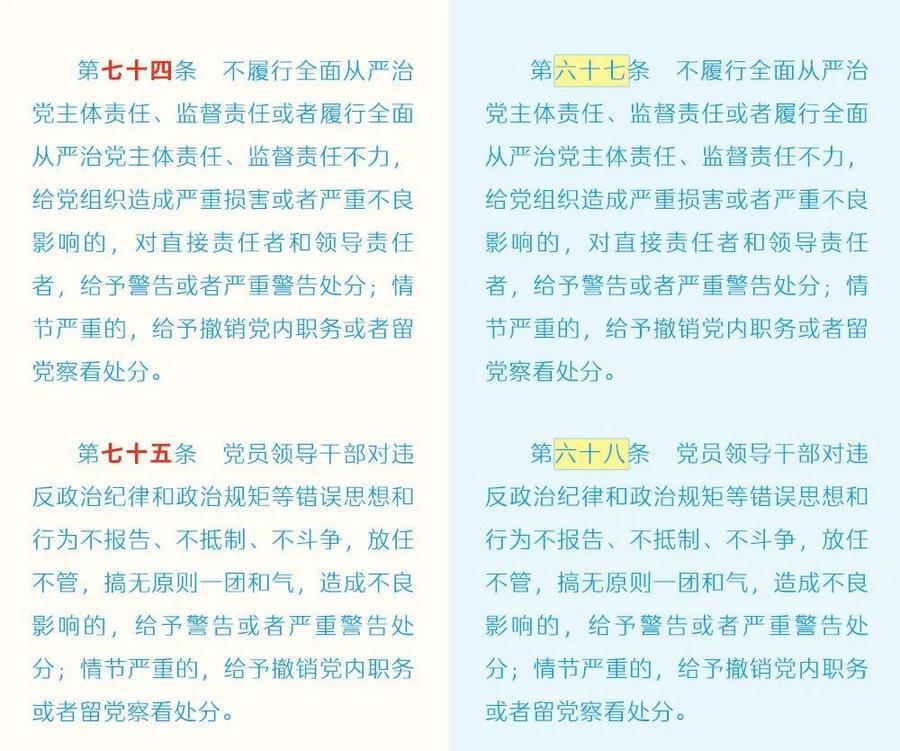 党纪学习教育 | 《中国共产党纪律处分条例》修订前后最全对照表